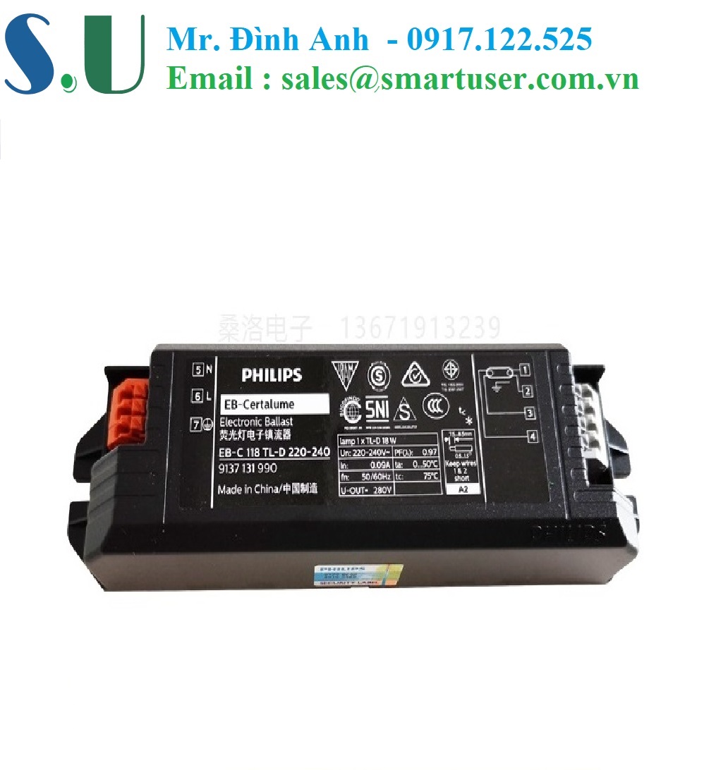 - Ballast điện tử Philips EB-C 118 phụ kiện hỗ trợ phát sáng cho bộ dèn gồm 2 bóng huỳnh quang T8 36W Philips. Giải pháp tuyệt vời giúp bạn có thể tăng khả năng tiết kiệm điện cho bộ đèn của mình đến 30%.